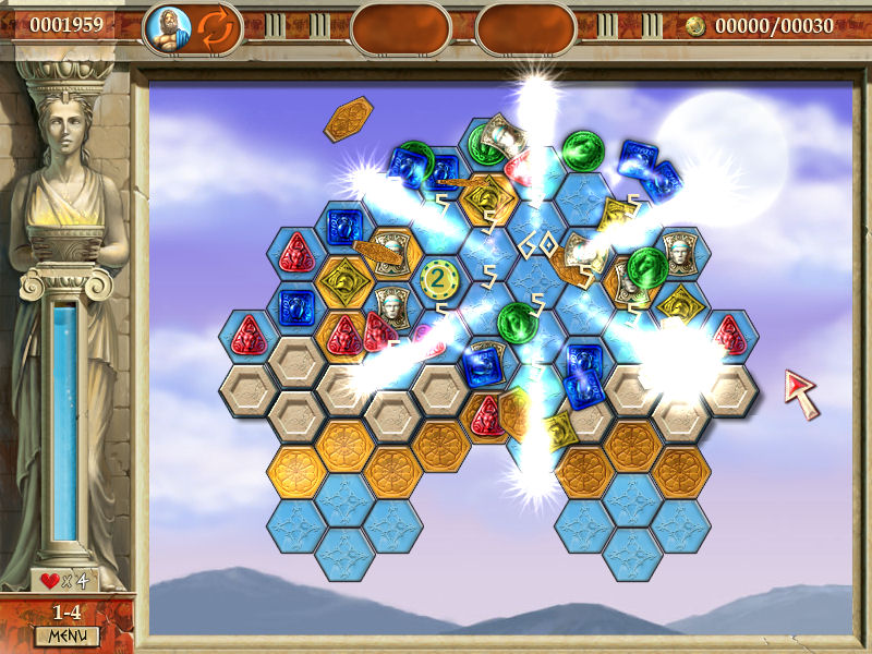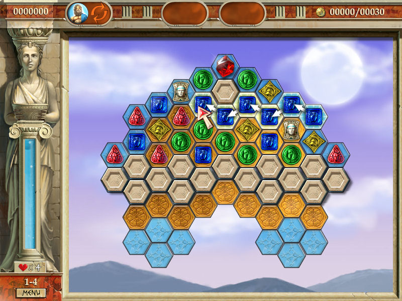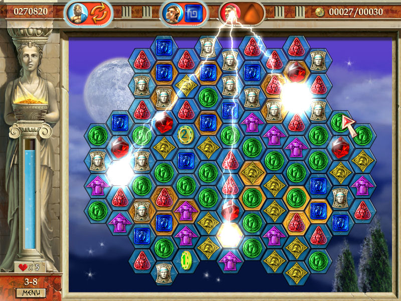 In Heroes of Hellas, you’ll travel through Ancient Greece to find the thief who stole the scepter of Zeus. This relaxing matching game challenges you to click and drag your mouse across objects on the game board to create chains of three or more identical items. When the going gets tough, you’ll be able to draw from the powers of seven heroes and use special bonuses that can help you win, even as you explore the history behind nine classic mythologies. Visually stunning, easy to learn and challenging to master, Heroes of Hellas offers an unforgettable adventure through a magical time.