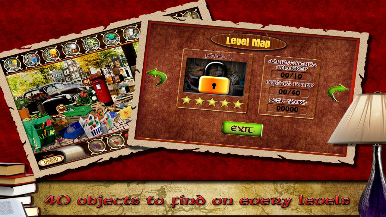 We have a level map which will remember your progress, we also have a hint feature that will help find those difficult objects and lastly we give you achievements and stars to earn.